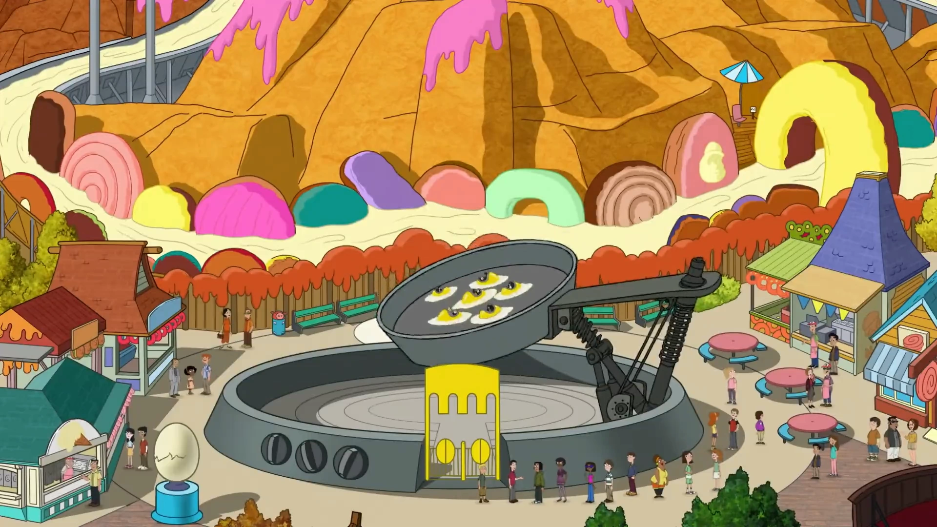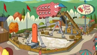 It has its own theme song, which explains some of the attractions. It contains the Greased Thunder rollercoaster (which has been said to resemble Phineas and Ferb's style), which it used to sustain before Milo and Melissa rode it and the consequences of Murphy's Law destroyed it. It also has a Lard Submarine which goes inside a lard lake where people can be amused by a large variety of meat stuck in the lard, and a cooking pan with fake eggs on it, where people sit. The cooking pan moves the eggs and launches them in the air like the cooker cooking eggs cliché. There is a petting zoo, where people can pet animals made of lard.