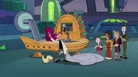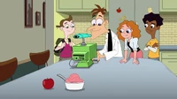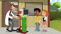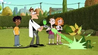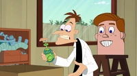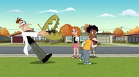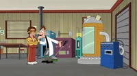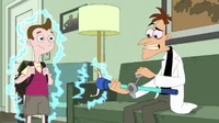 Doofenshmirtz once made an elaborate setup during his stay with the Murphys to join Sara's conversation with Neal on her cellphone. | "Doof's Day Out" (Appears in flashback(s)) |