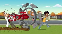 One last Inator Heinz shows to Zack, Melissa and Milo. He has no idea what it does, but judging by the fact that it can effortlessly pick up Milo in the air and tossing him into his room, where they discover it's actually an android meant to substitute for Milo, its purpose is likely to pick up metal objects with electromagnetism. | |