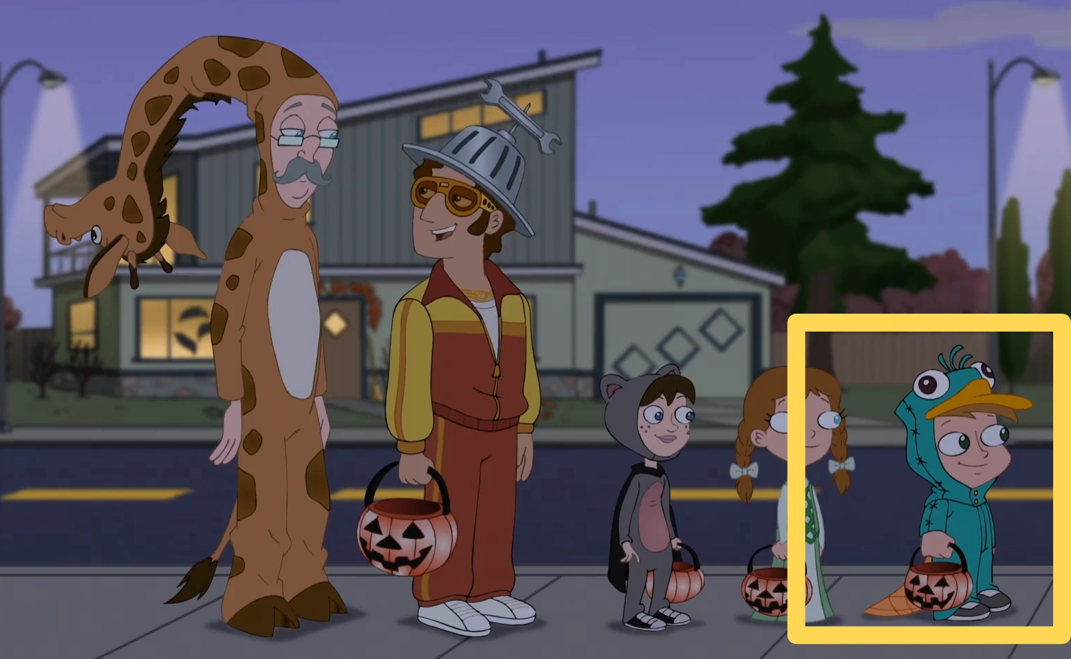 Many of the extras seen trick-or-treating also appeared in various Phineas and Ferb episodes. Some notable examples are: