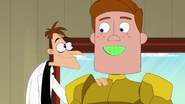In "The Goulash Legacy", Brigette cooks some goulash for the World's Greatest Goulash Contest, most of which falls victim to Murphy's Law. Her last crockpot of goulash also gets swept up by Murphy's Law figuratively and literally when some of Doofenshmirtz's Inators swap it with a chicken and blow it through the sky in a giant dust devil. It survives only to be stolen by Recurring Raccoon. After being cornered by Diogee, Recurring Raccoon ditches the goulash by throwing it into Doofenshmirtz's shed. There it falls onto a robotic body and sets off a chain reaction that ends with all of Doofenshmirtz's Inators present shooting it at once.