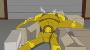 As the smoke clears, the World's Greatest Goulash is born. It is shown getting information about goulash and then flies off to try to save the world. But he gets distracted by Love Handel while they perform their coincidentally relevant song Goulash and runs into his one weakness, sky banners. After getting tangled in the banner, he falls into a time capsule that will be opened in the event of a war with robotic screech owls, which closes behind him.